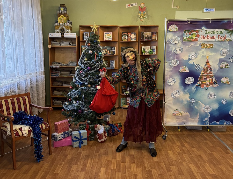 В преддверии Нового года в Библиотеке-филиале №11 прошло праздничное мероприятие «Нежный снежный Новый год». Юных посетителей встречала Бабуся-Ягуся, которая очень хотела быть на празднике Снегурочкой.
