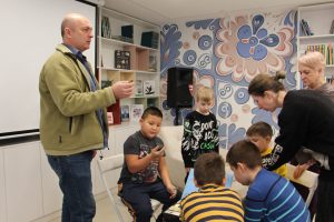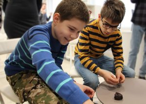 Завершилась встреча знакомством с уникальной коллекцией метеоритов, которая принадлежит клубу им. Ф.Ю.Зигеля. Взрослые и юные участники мероприятия смогли увидеть и подержать в руках образцы небесных тел. Наибольший интерес вызвал драгоценный осколок «Брагина». Этот метеорит был найдет в Беларуси в Брагинском районе в 1807 году.