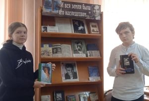 Для гостей был проведен обзор книжной выставки «И вся земля была его наследством», где они могли ознакомиться с литературой о жизни и творчестве поэта, а также с его произведениями.