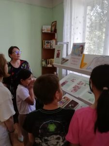 В течение Дня писателя для пользователей библиотеки проходили обзоры у выставки «Добрые книги доброго писателя». А также юным посетителям предлагалось прослушать отрывки из знаменитой повести «Кондуит и Швамбрания» с заданием изобразить карту страны Швамбрании и придумать слова или фразы на «швамбранском» языке.