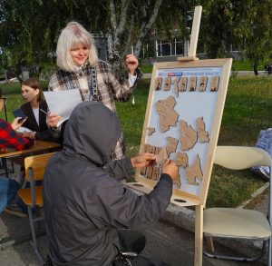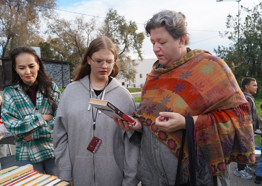 Вторую площадку организаторы разместили у «Азимута» — популярного места сбора участников городских мероприятий. Там развернулись различные интерактивы от сотрудников библиотеки, а также традиционный буккроссинг — обмен книгами, который стал особенно актуальным в День города. Здесь можно было собрать спилс-карту Астрахани, насладиться выставкой книг по истории и культуре региона. Для малышей организовали творческие мастер-классы и игровые зоны, что сделало мероприятие семейным и многогранным.