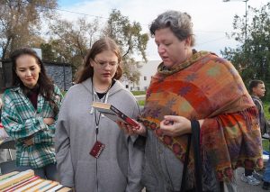 Наши специалисты работали сразу на двух ярких локациях. Одна из них — рядом с парком больницы имени Соловьева — стала классической «Точкой чтения». Именно здесь прошёл насыщенный культурный марафон, состоящий из двух частей. Вначале горожане услышали стихотворения местных поэтов, прославляющих родной город. Звучали как авторские произведения, так и строки именитых астраханских литераторов прошлых лет.