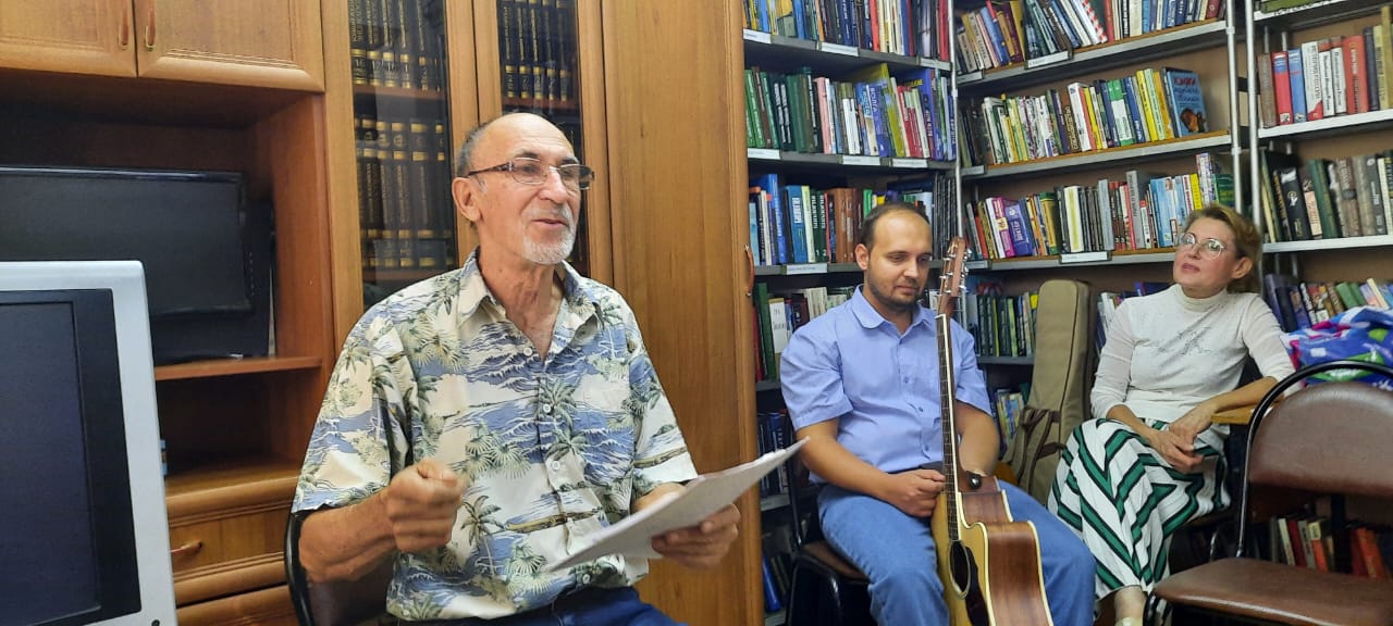 В рамках проекта «Встречи в библиотеке» и в честь празднования Дня города, в Библиотеке-филиале №4 состоялась особенная творческая встреча с астраханскими бардами и поэтами, которая получила название «Край родной в стихах и песнях». Мероприятие стало ярким событием, объединившим любителей поэзии и авторской музыки, и подарило участникам незабываемые эмоции.