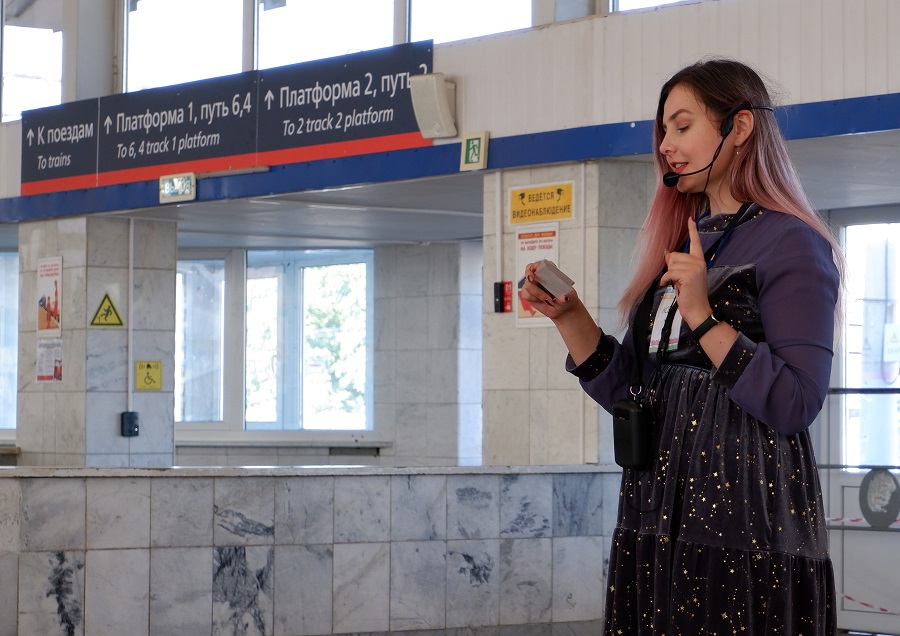 Вначале железнодорожники рассказали об особенностях работы вокзального комплекса и его техническом оснащении: справочных видеотерминалах, электронных табло, фандомате. Кроме того, показали экскурсантам помещения исторического здания вокзала, детскую площадку, выставки, а также живой уголок с экзотическими птицами.