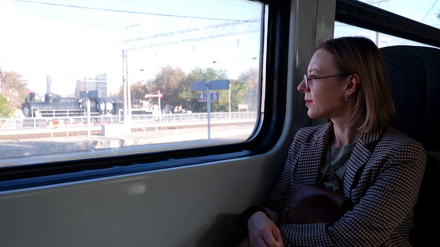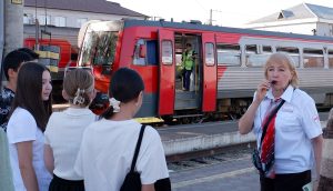 Далее экскурсантов ждал сюрприз – поездка на рельсовом автобусе по станции Астрахань-1. Пока за окном менялись виды, читателям рассказывали о принципах действия и особенностях строения пригородного подвижного состава. В завершении совсем маленьким читателям показали, как выглядит кабина машиниста.