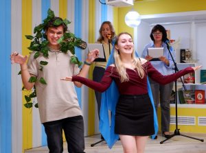 Татарская, казахская и калмыцкая сказка звучали в исполнении чтецов, а самые смелые из зрителей с помощью пантомимы иллюстрировали рассказы. Приветствовался любой креатив и полное раскрытие своих творческих способностей. Для того, чтобы максимально вжиться в роль, участникам предложили элементы костюмов и реквизит.