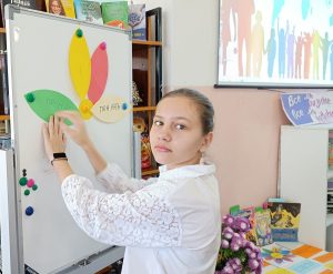 Библиотекарь рассказала историю праздника, а также раскрыла его актуальность для современного мира. В продолжении лекционной части участников ждала дискуссия, где они сами давали определения таким понятиям, как толерантность, эмпатия, предрассудки и стереотипы. Для лучшего понимания, специалисты библиотеки подготовили игровые задания, в которых посетители искали черты толерантного человека. А чтобы стать таким человеком, гости определили для себя правила поведения в социуме и выразили их в виде цветка.