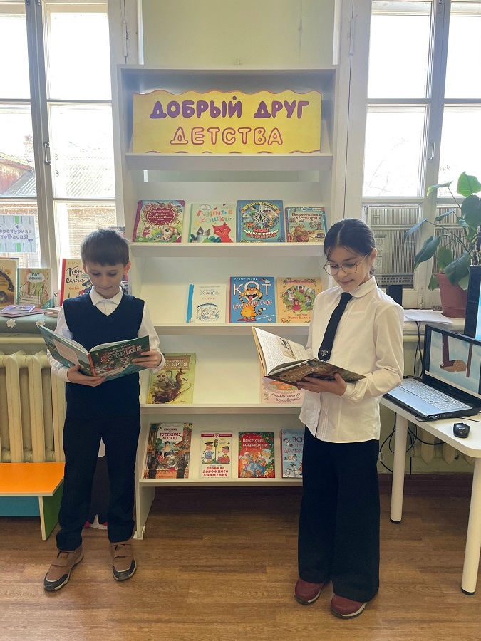 Завершилась встреча обзором книжной выставки «Добрый друг детства», на которой были представлены как знакомые, так и малоизвестные произведения Андрея Усачёва из фонда библиотеки. Ребята с интересом рассматривали иллюстрации, читали отрывки и выбирали книги для домашнего чтения.